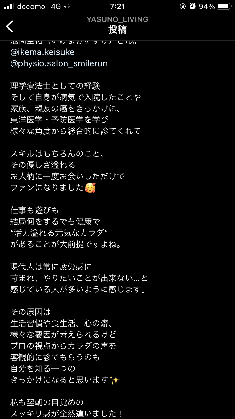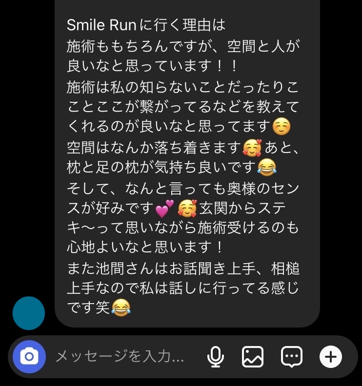 是非smile RUNで施術うけてほしいです!不調な所良くなります!!本当におすすめです!