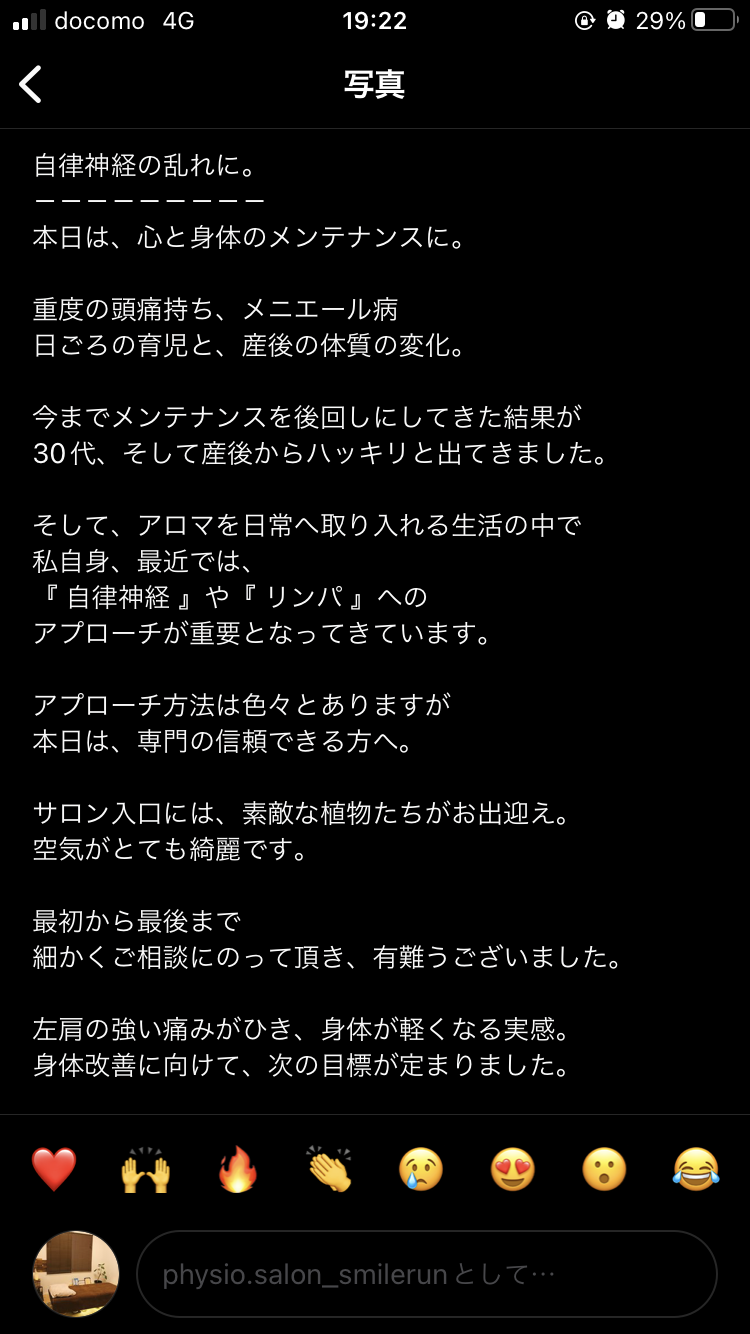 インスタで見つけて。理学療法士の緑験もあるとあったので。 直感で選びました。