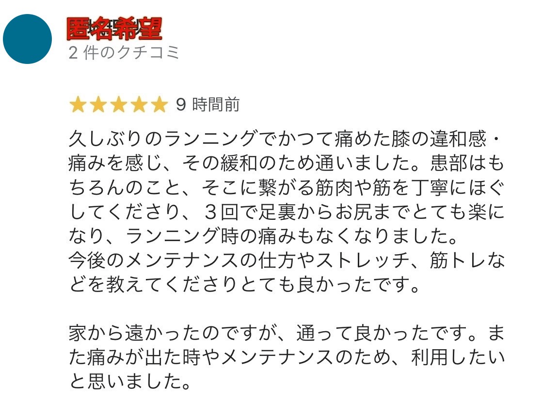 また痛みが出た時やメンテナンスのために、利用したいと思いました。」