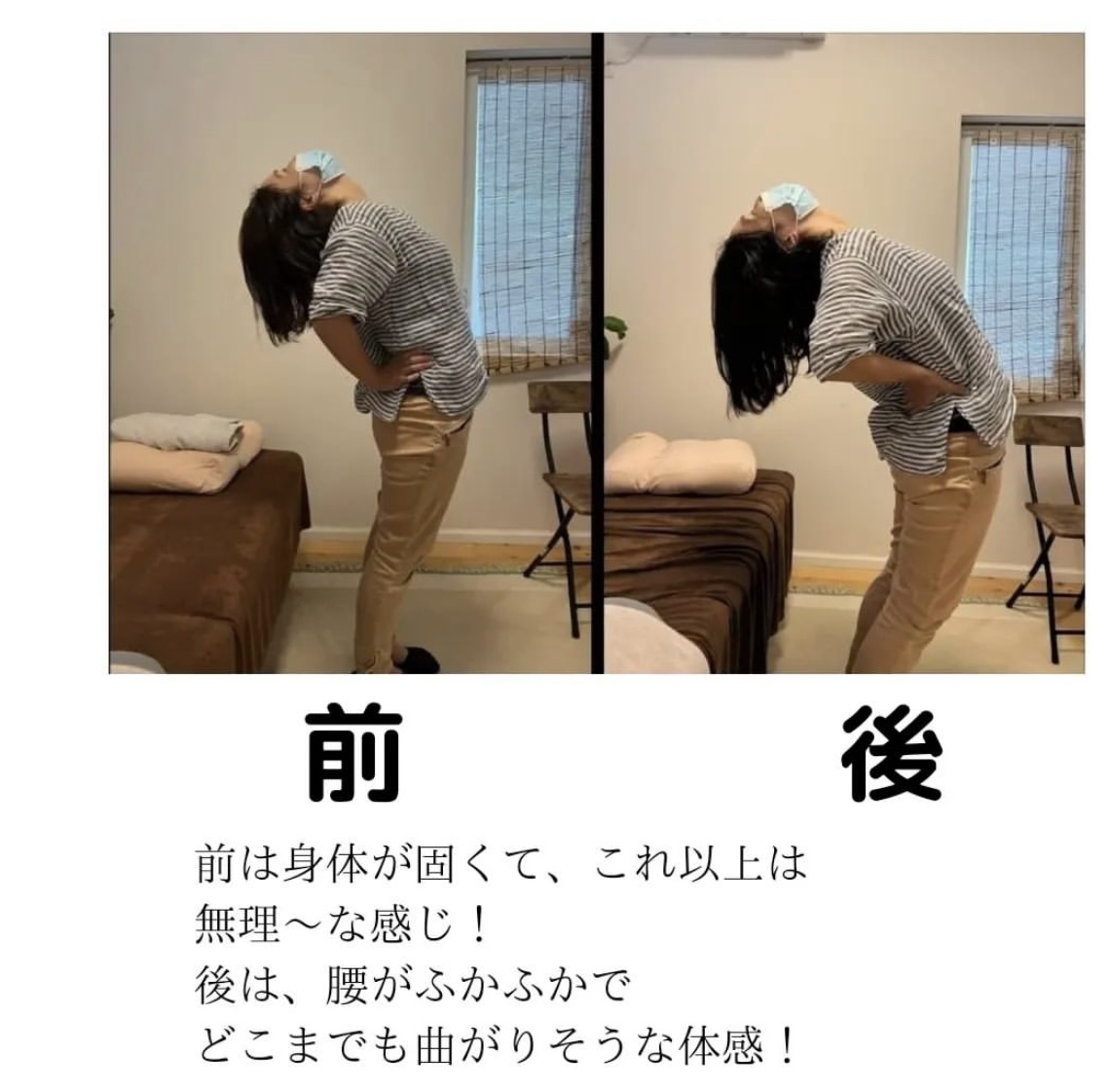 けど、今日は姿勢をただしても背中の違和感を全く感じないです!」