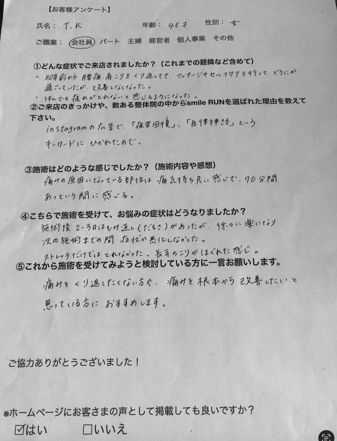 T・K様(45歳) 会社員 女性