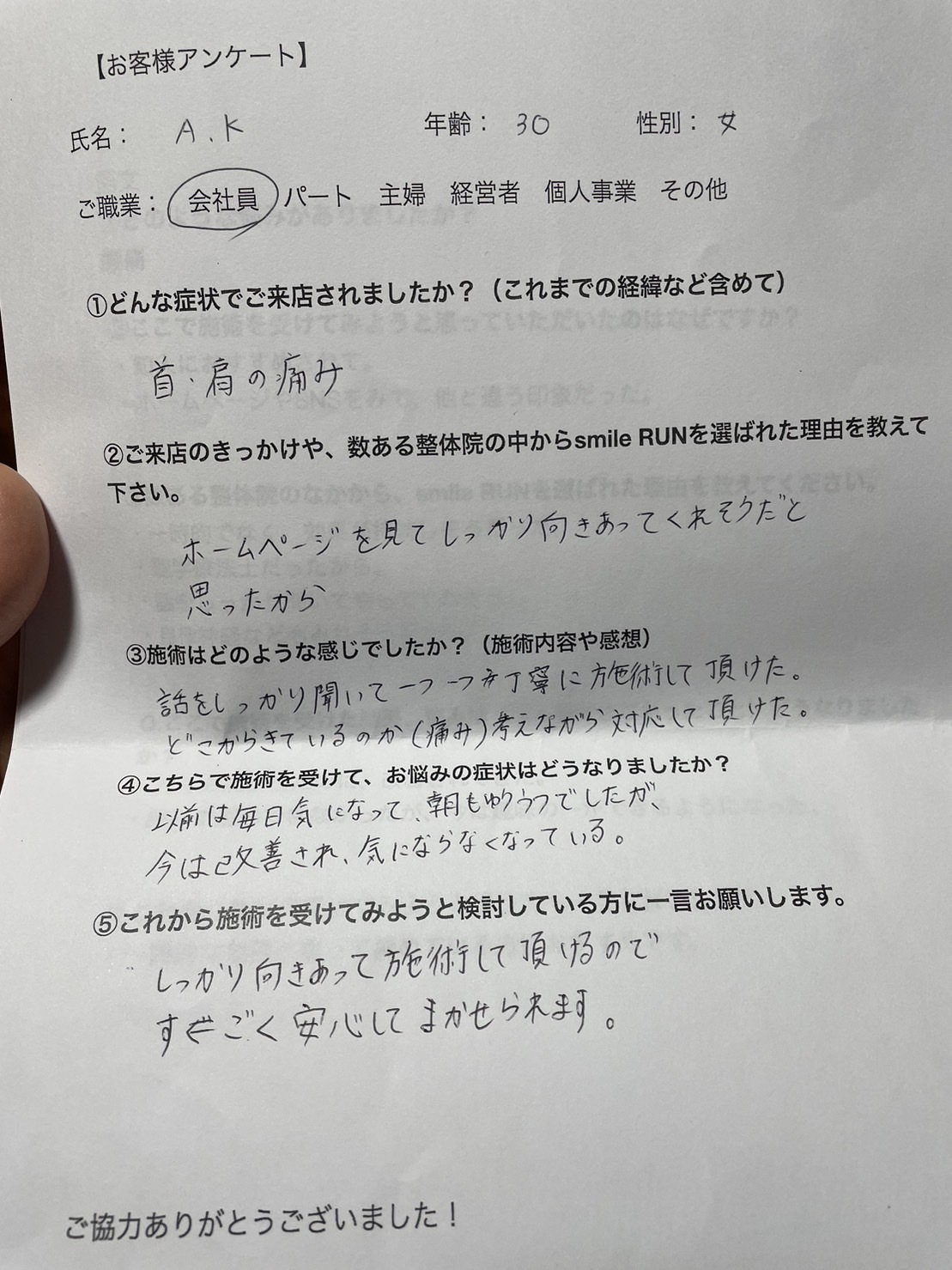 A・K様(30歳) 会社員 女性