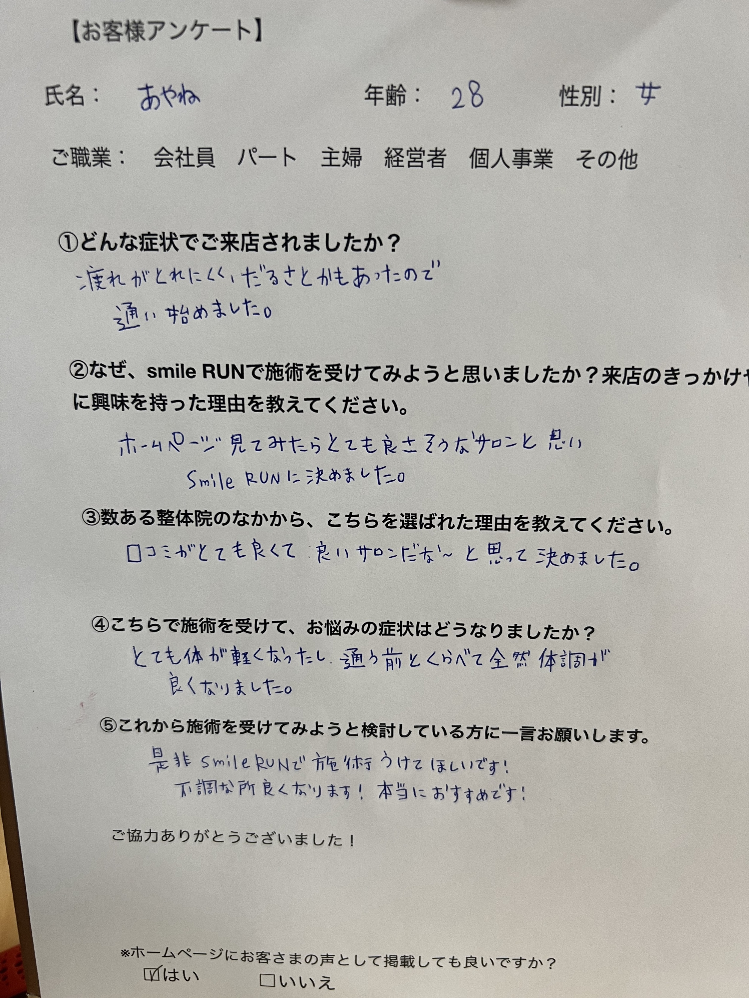 smile RUNにご来店いただいたお客様のリアルな声をお届けします。 -