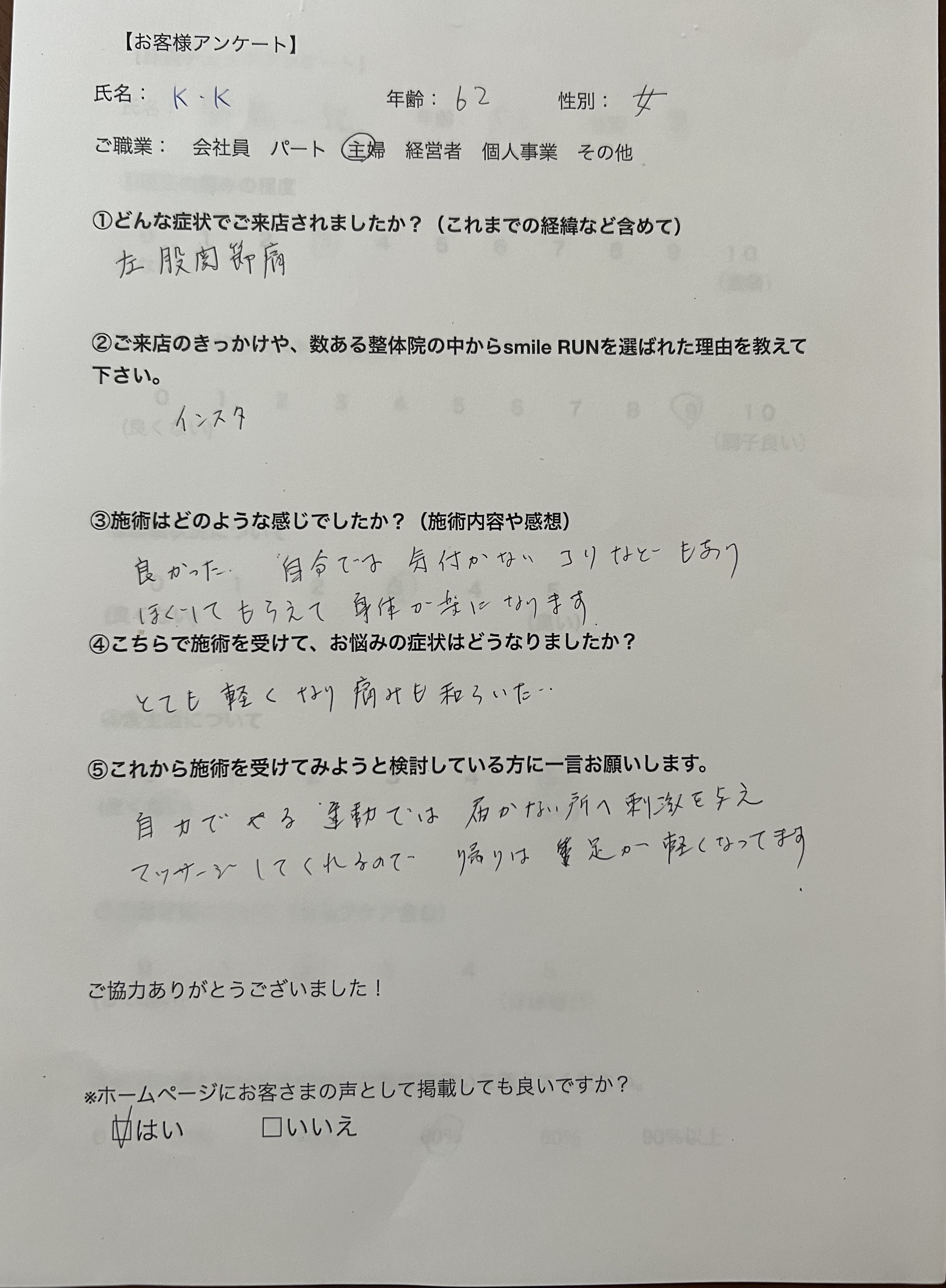 K・K様 62歳 女性 主婦