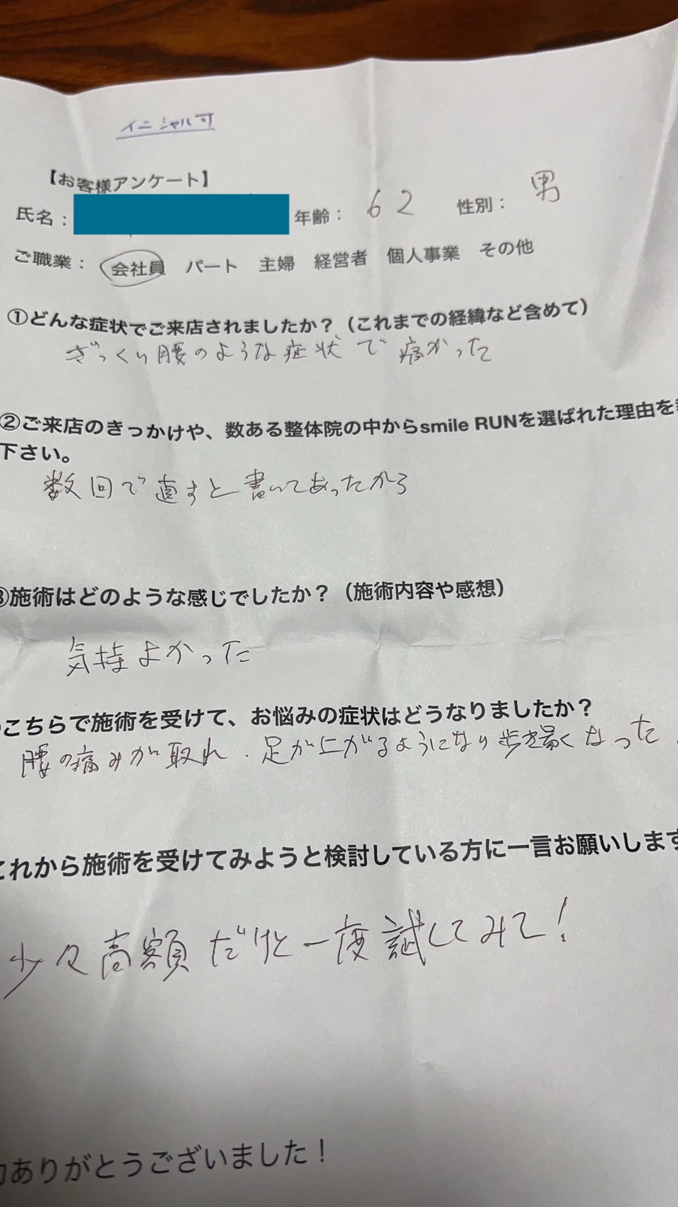 「1回で良くなりましたよ!」